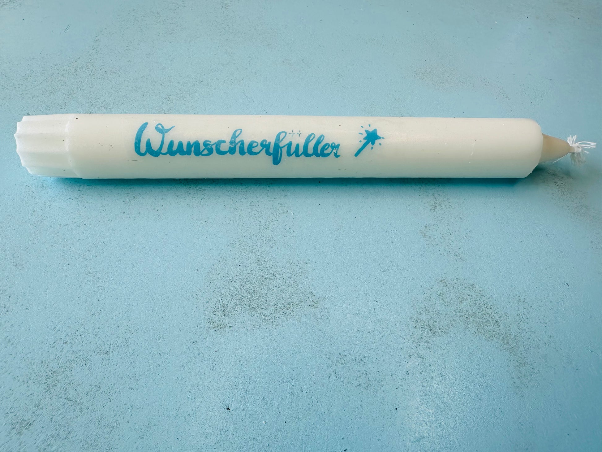 selbst gestaltete Kerze mit Spruch Wunscherfüller handmade Geschenkidee Geburtstagsgeschenk
