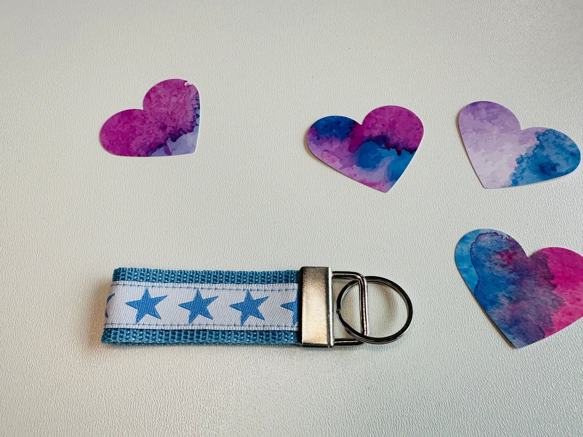 Schlüsselanhänger mit Sternen hellblau/ weiß