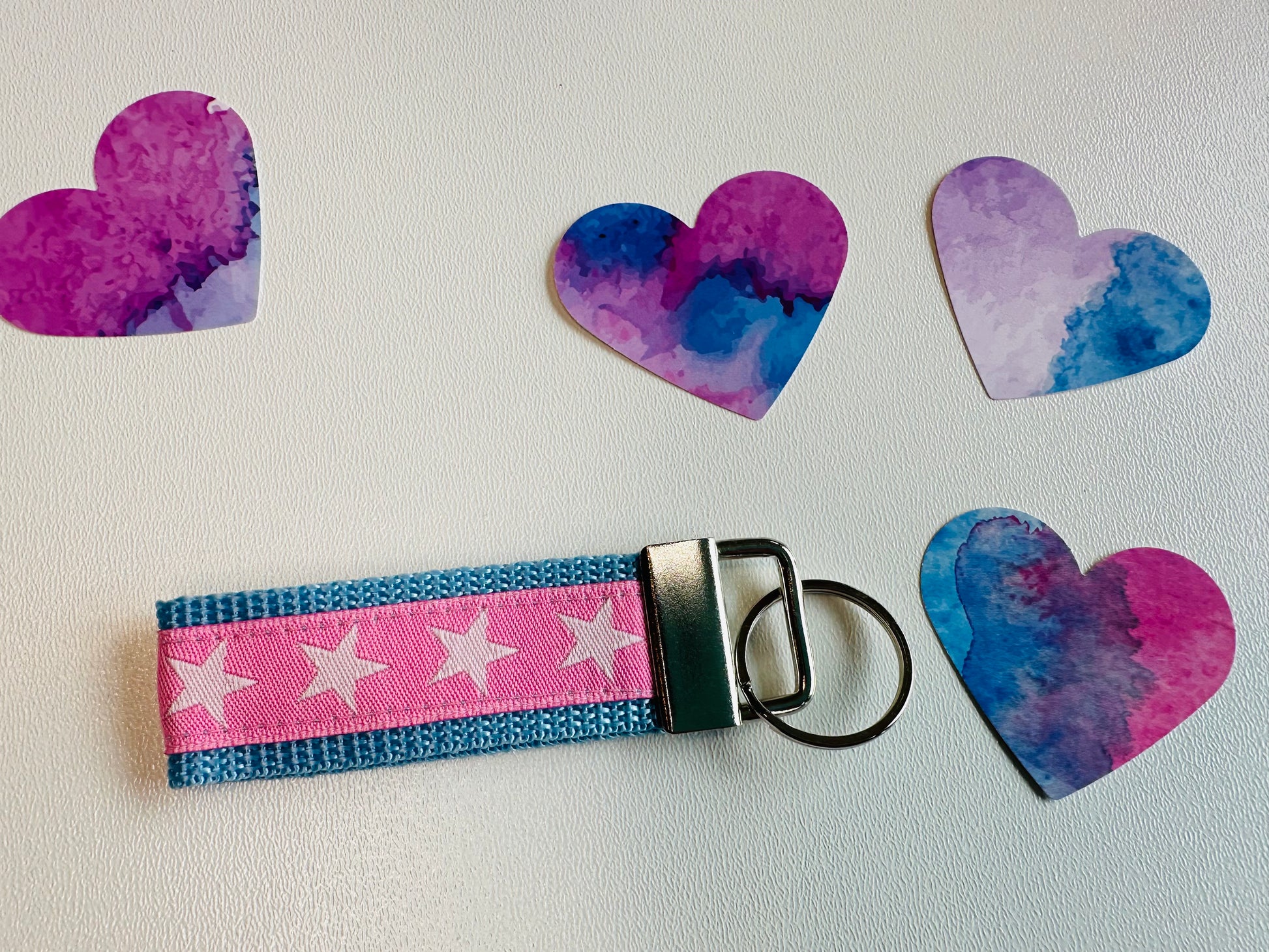 Schlüsselanhänger mit Sternen türkis/ rosa/ weiß